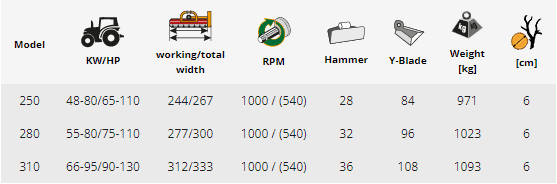 Takket være de utskiftbare, selvrensende knivene fra HARDOX (standardutstyr), montert på en robust hovedramme, får du en svært jevn og fin klipp. Hydraulisk forskyvning er standardutstyr.